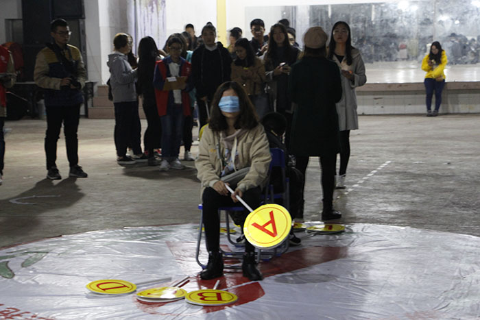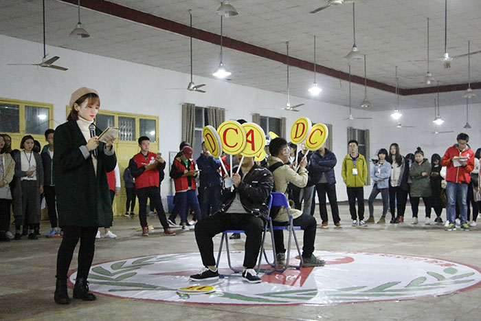 活动过程中,首先由志愿者组织参赛人员入场,由主持人宣布竞赛开始并为各班级参赛人员讲解游戏规则,参赛队伍成班分组,积极讨论、认真作答。随着主持人宣布比赛开始,大家争踊向前。