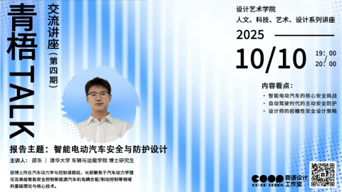2025年10月10日晚,Betway必威西汉姆联系列学术讲座“青梧Talk”第四期成功在线上举办。本期讲座特邀清华大学车辆与运载学院博士研究生邵东,以《智能电动汽车安全与防护设计》为题,为全院近百名师生带来了一场关于前沿科技与设计融合的深度分享,现场反响热烈。