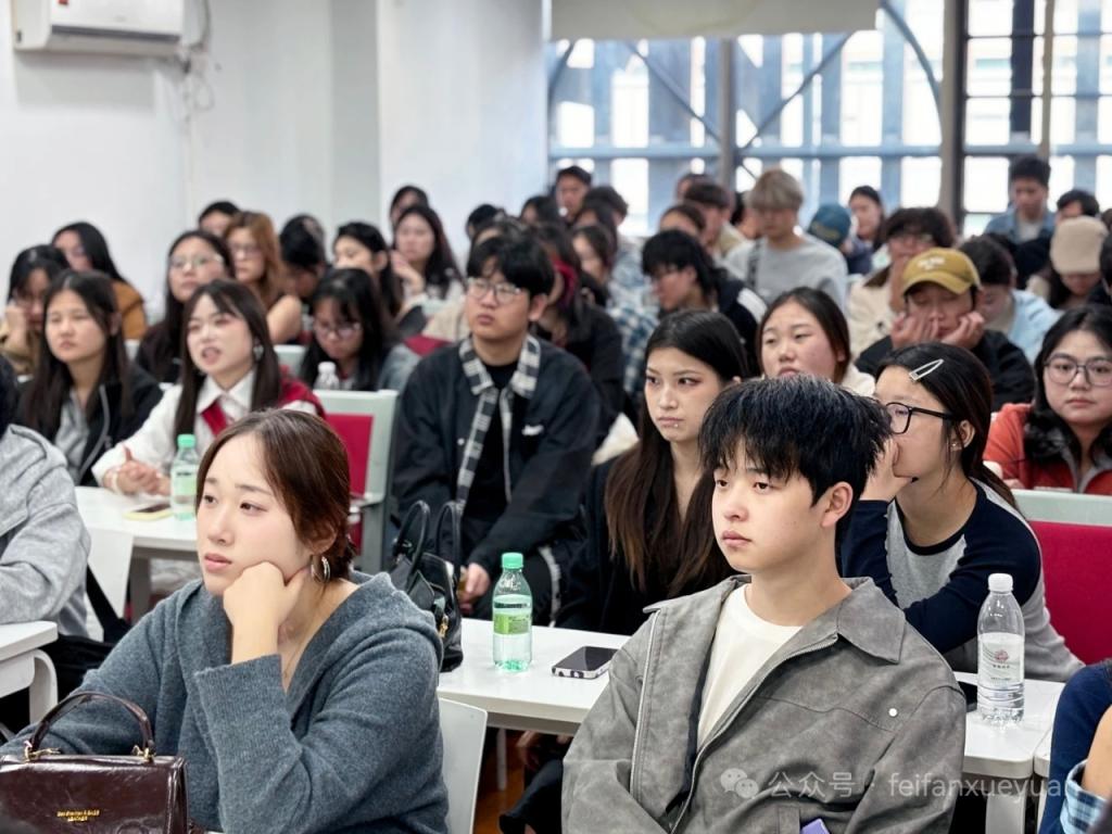 之后大家又如约来到上海非凡教育,开启了一场AIGC及就业择业的盛宴。在非凡教育院长董恩海的热情引导下,师生们依次参观了学院的教学环境、实训场地、拍摄基地、服装实训基地等。非凡教育教学总监武凯老师为大家带来“AI短剧创作”主题分享。武老师围绕AI短剧创作的流程、技巧以及行业发展趋势等内容展开讲解。结合实际案例,生动形象地向师生们展示了AI技术在短剧创作中的应用。现场还与大家进行互动交流,耐心解答师生们提出的疑问。讲座内容充实、干货满满,让在场师生对AI短剧创作有了全新的认识。紧接着,董院长为师生们带来《大学生择业期如何少走弯路》的专题讲座。董院长从自己的择业创业经历开启分享,从职业规划的重要性、到如何制定合理的职业目标、大学生职业能力提升策略等方面进行了细致讲解。他强调,大学生应尽早树立职业规划意识,结合自身优势与行业需求,明确发展方向,不断提升综合能力以适应市场竞争。期间多次与同学们思维碰撞交流,为同学们答疑解惑。最后高欣老师总结发言,对活动主办方表达了感谢,鼓励同学们通过专业考察努力提升自己的专业能力和职业规划意识,提前为进入社会做好思想和行动上的准备。
